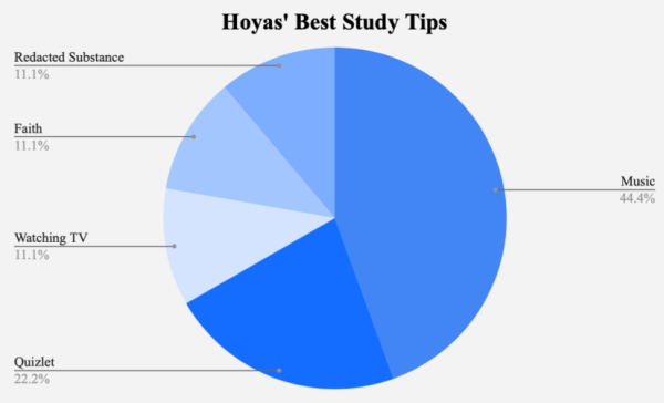 In a poll asking Georgetown students for their best exam season study hacks, 44% of respondents mentioned utilizing music to destress and make study sessions a little more enjoyable.