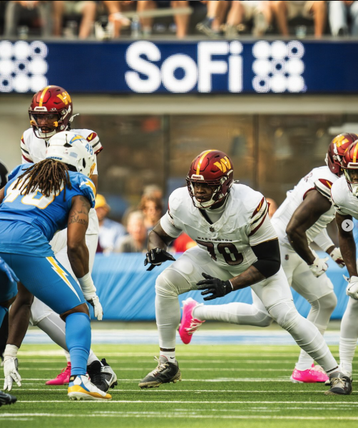 The game did not start well for Washington, though. The Chargers got the ball first and tore down the field. Wide receiver Ladd McConkey caught a pass in the end zone from quarterback Justin Herbert to cap off a 9-play, 76-yard drive to open the game, making it 7-0 for the Chargers with 9:49 left in the first quarter.