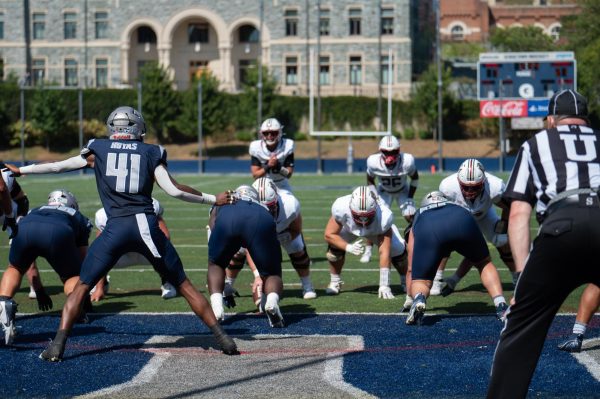 The Hoyas had to answer, but still found themselves unable to cut into the Leopards’ lead. The tide of the game quickly changed; as the Leopards were knocking on the door of the end zone, Hoyas senior linebacker Naiteitei Mose stripped the ball from DeNobile and ran 99 yards to the house for a huge boost from the Georgetown defense to keep the game close.